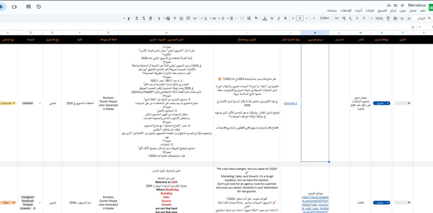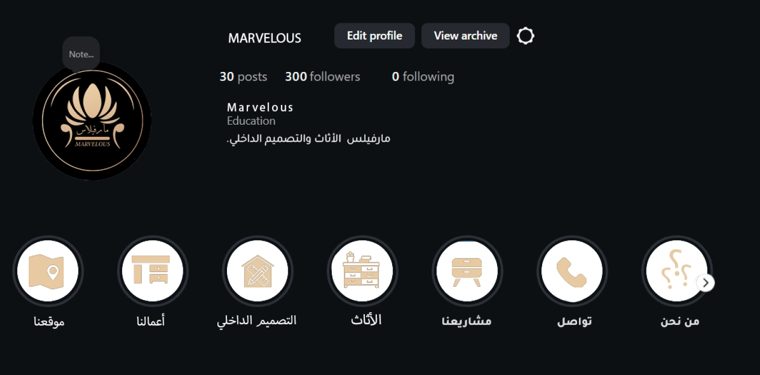عملنا مع Marvelous على تعزيز حضورها في السوق من خلال تطوير هوية بصرية موحدة، ووضع استراتيجية محتوى منظمة، وإدارة احترافية لمنصات التواصل الاجتماعي بما يعكس جودة منتجاتها وطابعها العصري في التصميم الداخلي.